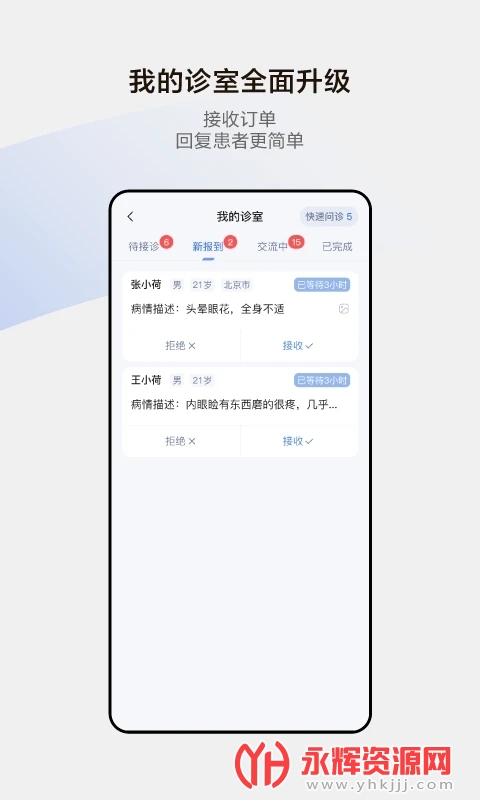 患者管理板块允许医生查看待接诊的患者,了解他们的病情和需求,方便医生快速解决患者的问题。这个功能有助于提高医生与患者之间的沟通和协作效率。