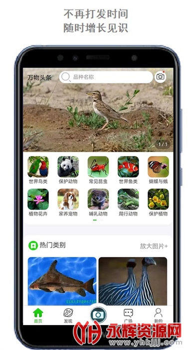 万物识别是一款非常好用且功能强大的移动端掌上智能扫描类应用软件。这款应用软件通过拍照即可识别动植物,并提供相关的百科知识。该软件方便用户了解不同动植物的信息,支持超过两万个品种的识别,支持超过两万个品种的动植物识别,涵盖花卉植物、水果蔬菜、鸟类、鱼类、蝴蝶、昆虫、狗狗、萌猫等。如果您对这款软件感兴趣的话,不妨来永辉资源网下载体验一番吧!
