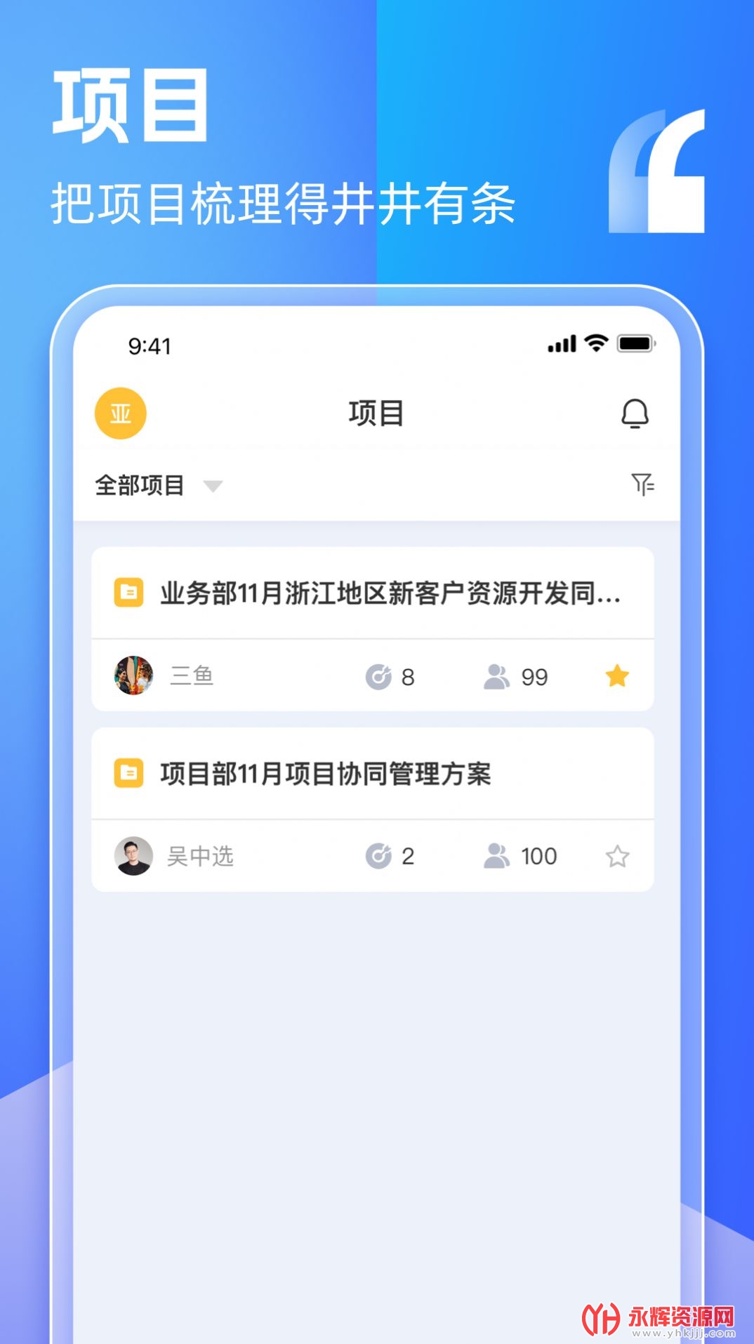 盯目是一款非常专业且功能性强的移动端掌上多功能手机办公平台应用软件,旨在提供高效、便捷的办公管理体验。这款应用软件通过集成任务管理、团队协作和文件查询等功能,盯目能够帮助用户更好地组织工作、提升团队合作效率,并快速定位所需文件。如果您对这款软件感兴趣的话,不妨来永辉资源网下载体验一番吧!