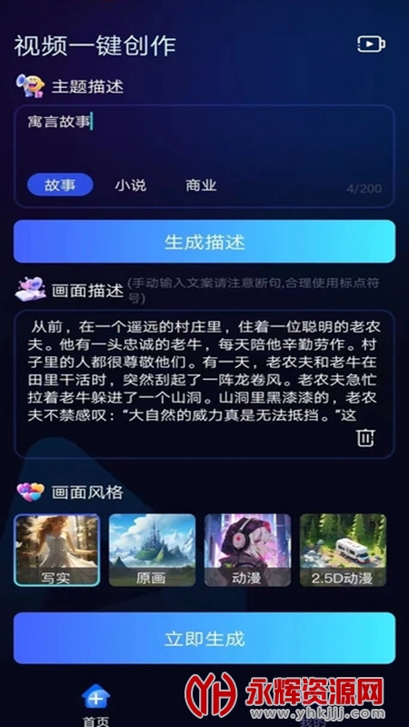 视频一键创作助手是一款强大的视频制作工具,为用户提供便捷、高效的视频创作体验。无论是个人创作者、社交媒体运营者还是企业宣传部门,都能通过该软件制作出引人注目的视频内容。通过视频一键创作助手,用户不仅可以轻松快速地制作出令人满意的创意视频,还能通过自定义和编辑功能,将视频内容与个人或品牌风格相匹配,提升视频的专业度和独特性。如果您对这款软件感兴趣的话,不妨来永辉资源网下载体验一番吧!