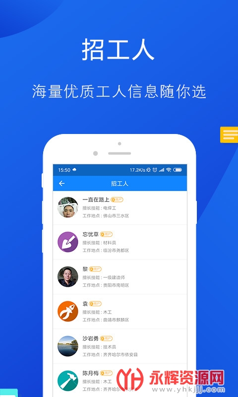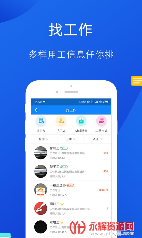 专为建筑工人打造的移动平台,解决工程建筑业招工难、求职难的问题。