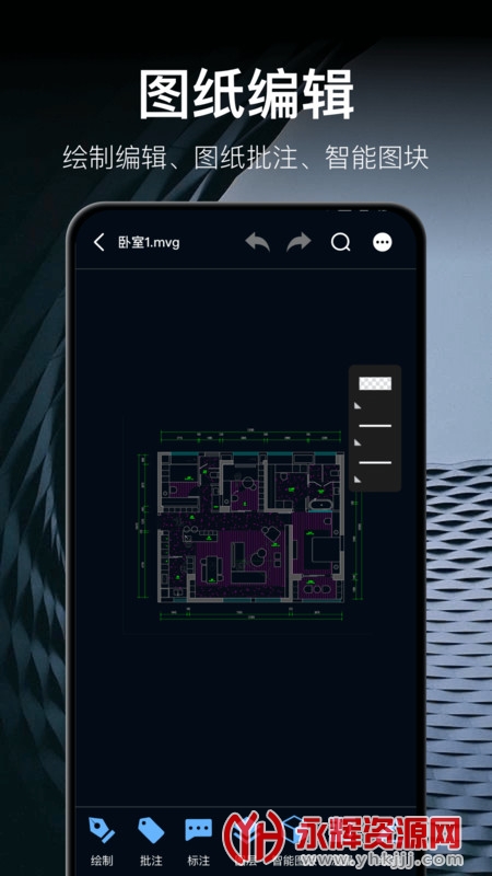 2、图纸编辑和标注:用户可以直接在手机上对图纸进行编辑和标注,例如添加文字、画线、标记尺寸等,提升工作效率。