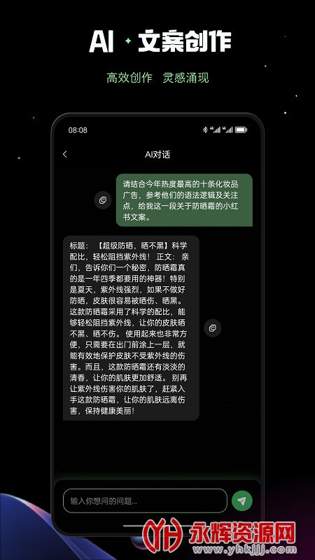 AI创作鸭是一款使用人工智能技术开发的智能创意软件,旨在帮助写作者提高创作效率,自动生成高质量的词汇、段落和文章。用户只需输入自己的写作主题和重点,AI创作鸭就能快速生成多样化的内容,从而加快创作速度。AI创作鸭能够根据用户输入的主题进行智能创作,自动生成富有信息量、易于理解和吸引人的文章内容。如果您对这款软件感兴趣的话,不妨来永辉资源网下载体验一番吧!