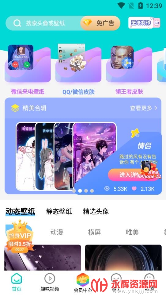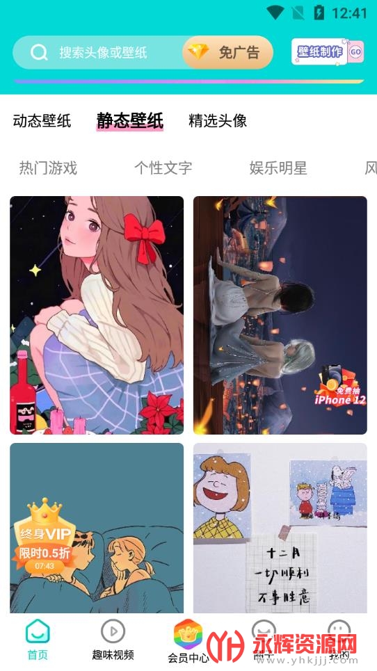 海量壁纸资源:提供百万级的高清无水印壁纸,每一张壁纸都经过精心挑选,无论你需要与时俱进的热门壁纸还是个性化的壁纸,都能在这里找到。