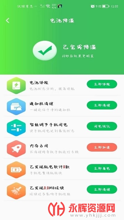 电池修复功能:快速定位耗电原因并进行修复,有效增加手机待机时长。