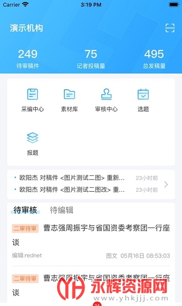 1、多功能集成:新湖南云助手集成了移动端文本编辑系统、直播推流系统、审核系统、素材存储等多个业务系统。这些功能的集成使用户能够在移动设备上完成多种任务,如撰写和编辑文章、进行直播推流、审核内容以及管理素材等。