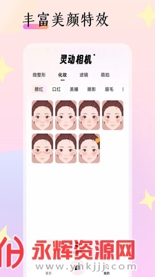 灵动相机的特色体现在其先进的面部识别和图像定制技术,允许用户轻松选择最适合自身特征的美化方案。