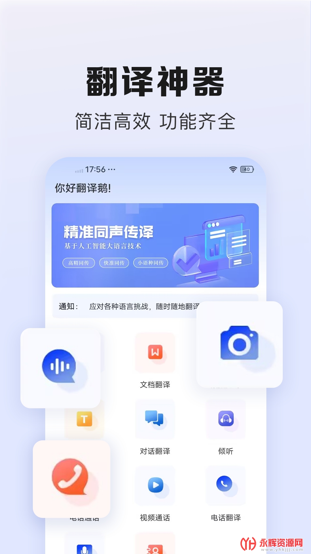 翻译鹅,一款非常好用且功能齐全的多功能移动端掌上在线翻译工具应用软件,旨在为用户提供全面而便捷的语言解决方案。这款软件结合了拍照翻译、同声翻译以及文本翻译等多样化的功能,无论是在线还是离线,都能帮助用户轻松跨越语言障碍。如果您对这款软件感兴趣的话,不妨来永辉资源网下载体验一番吧!