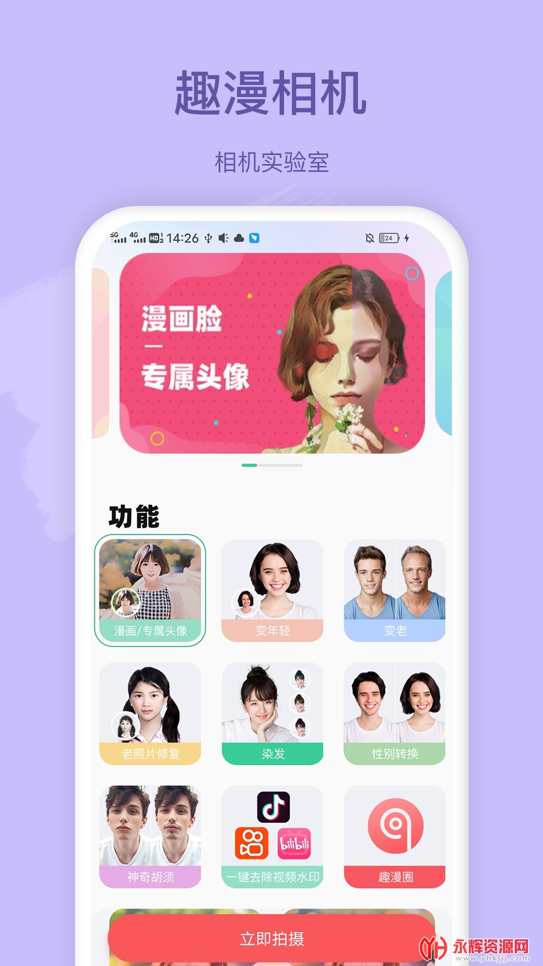 趣漫相机是一款创意十足且功能强大的移动端掌上照片编辑拍摄类应用软件,专为爱好摄影与漫画风格的用户而打造开发。通过这款软件,用户可以轻松将普通照片转化为具有个性化漫画艺术效果的作品,体验照片艺术化的乐趣。如果您对这款软件感兴趣的话,不妨来永辉资源网下载体验一番吧!
