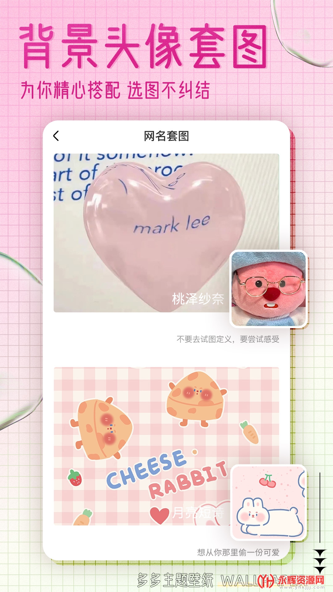 多样资源:除壁纸外,还提供头像、表情包、朋友圈背景等个性化设置项