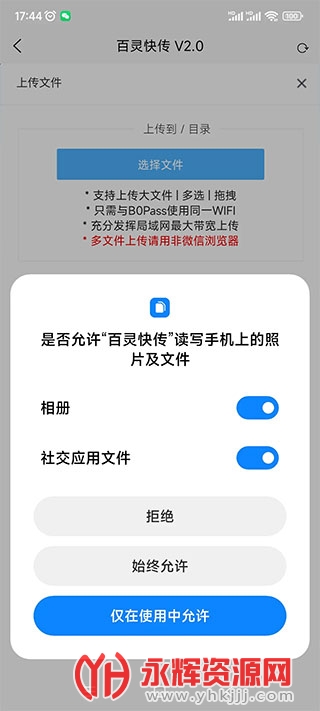 百灵快传是一款非常优秀且功能强大的移动端掌上文件传输工具应用软件。用户可以利用这款应用软件在手机和电脑间进行高效的文件传输。它基于Go语言开发,提供了强大的性能和稳定性,即使是超大文件也能快速传递。如果您对这款软件感兴趣的话,不妨来永辉资源网下载体验一番吧!