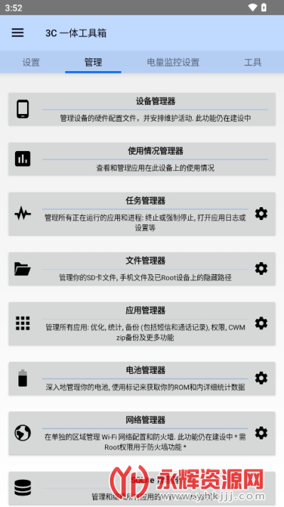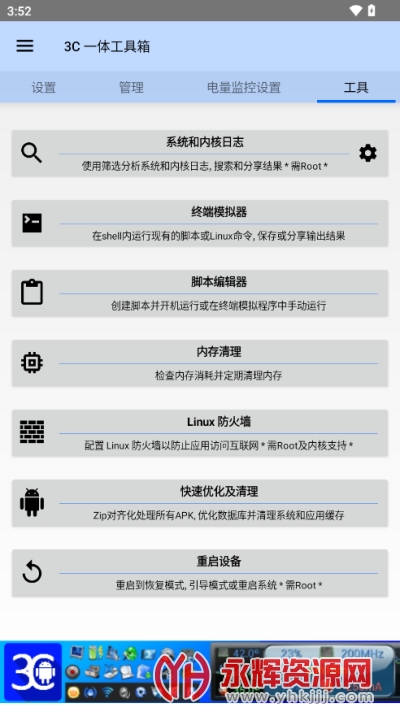 3C一体工具箱是一款非常好用且功能齐全的移动端掌上全能玩机助手应用软件,专为安卓用户设计打造开发。这款应用软件能够为用户提供一站式的手机系统优化方案。它的界面简洁,操作便捷,非常适合不同层次的用户使用,包括对手机系统不太熟悉的初学者。如果您对这款软件感兴趣的话,不妨来永辉资源网下载体验一番吧!