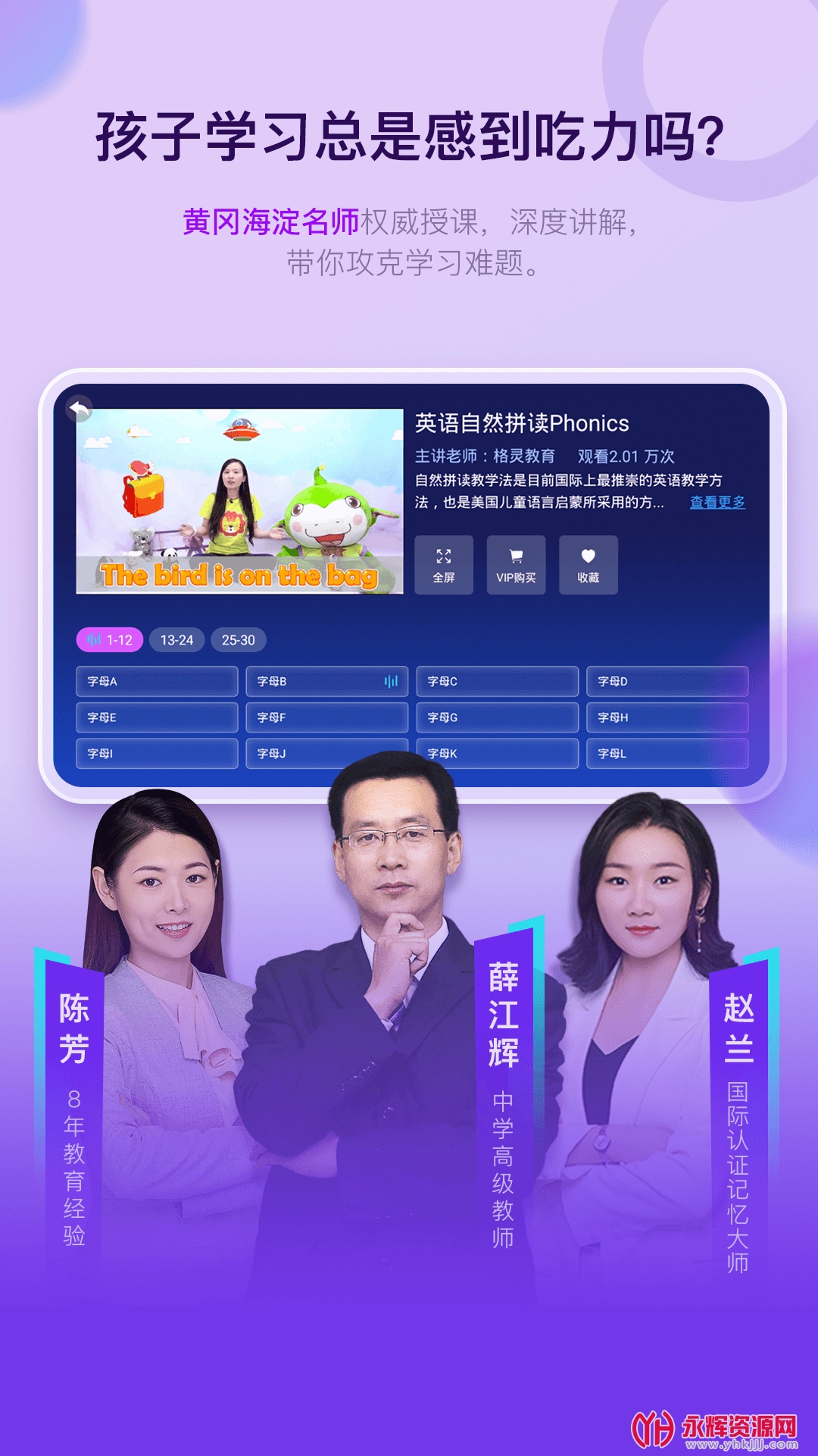 免费课程:提供与学校现行教材相匹配的中小学同步辅导计划,丰富有趣的多媒体互动课程,完全免费获取。