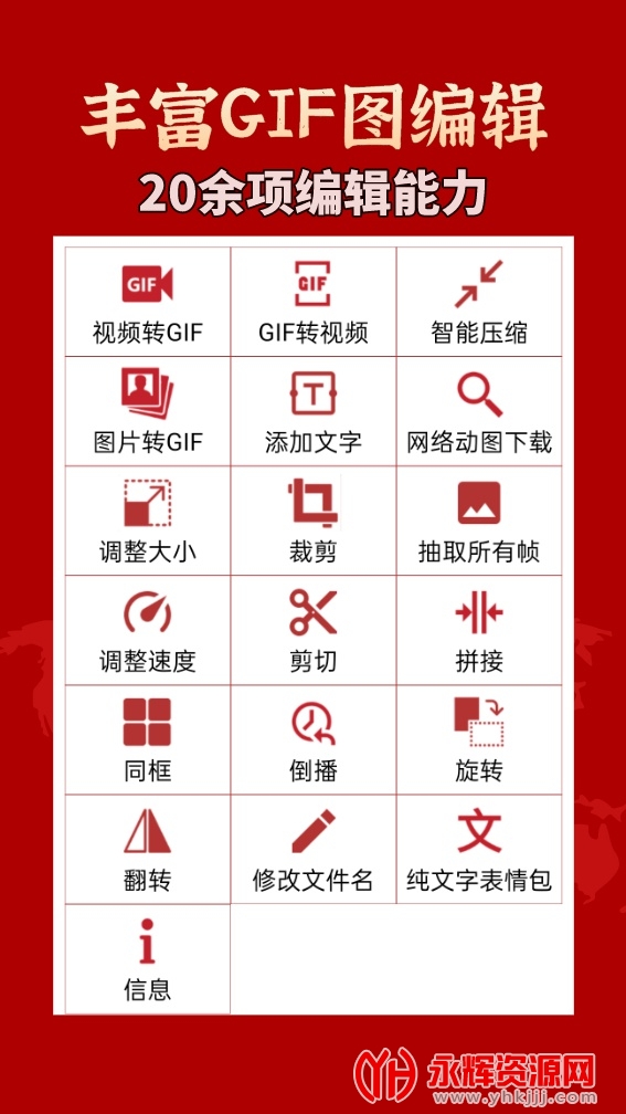 GIF编辑:包括压缩、调速、镜像、倒放等强大的GIF编辑功能。