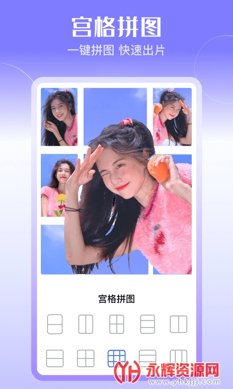 九格切割和多栅格选项,简化社交媒体布局与上传。