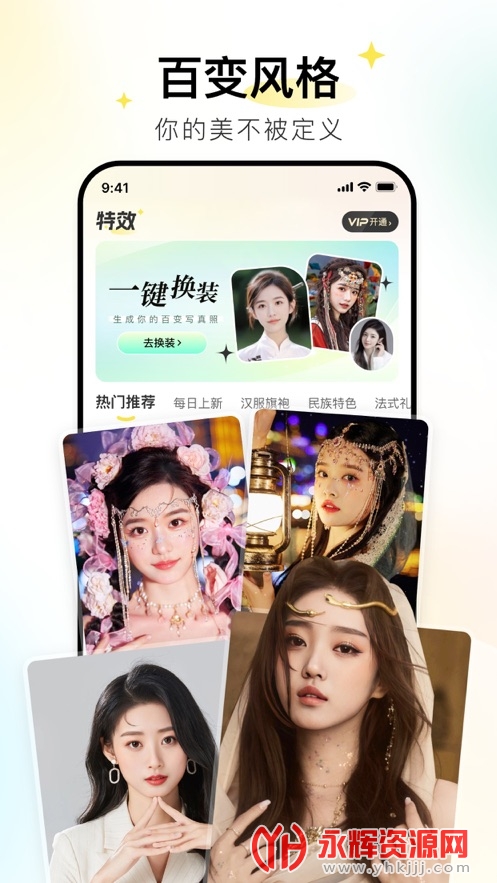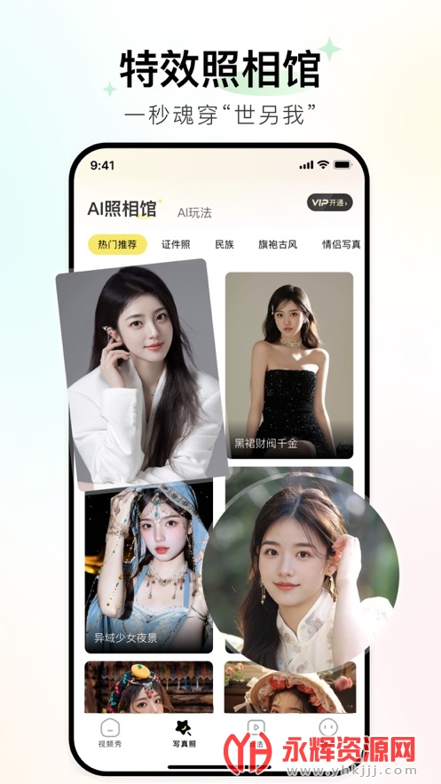丰富模板:提供上千种潮流模板,包括写真大片、民族服装、美丽街拍等。