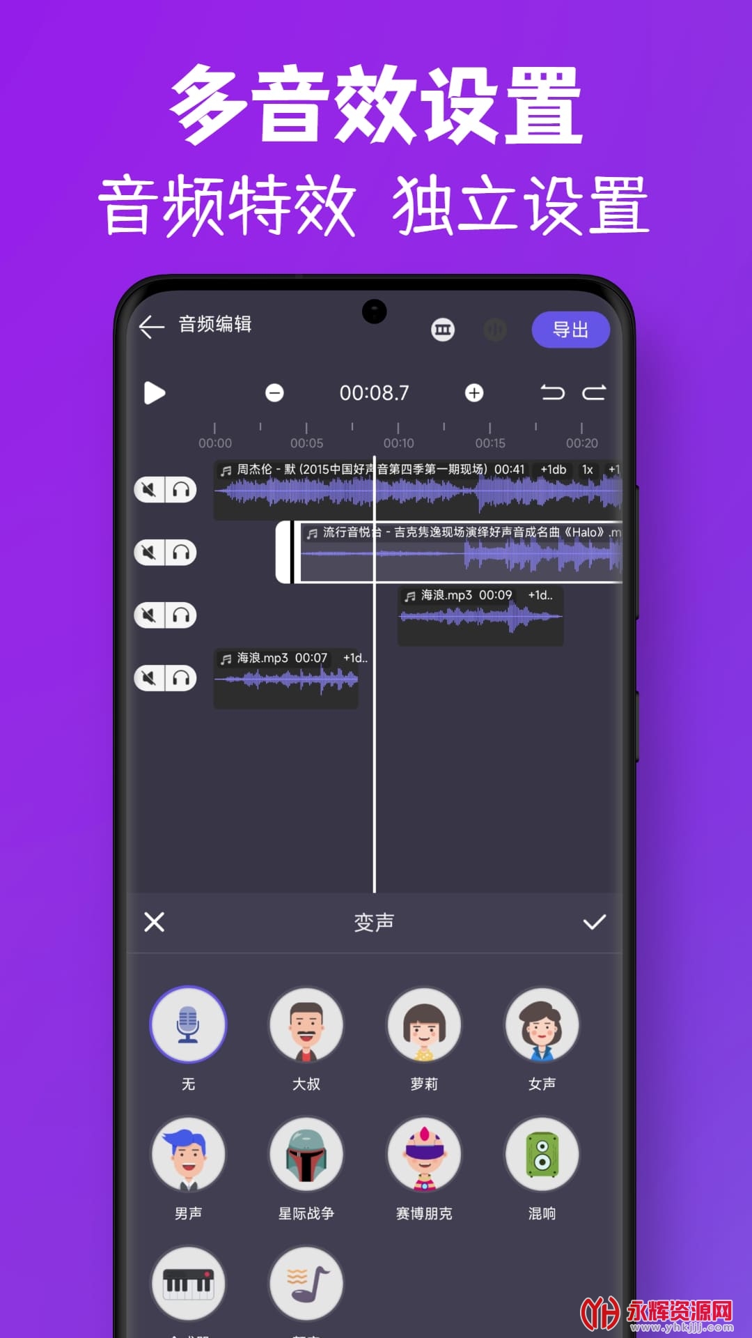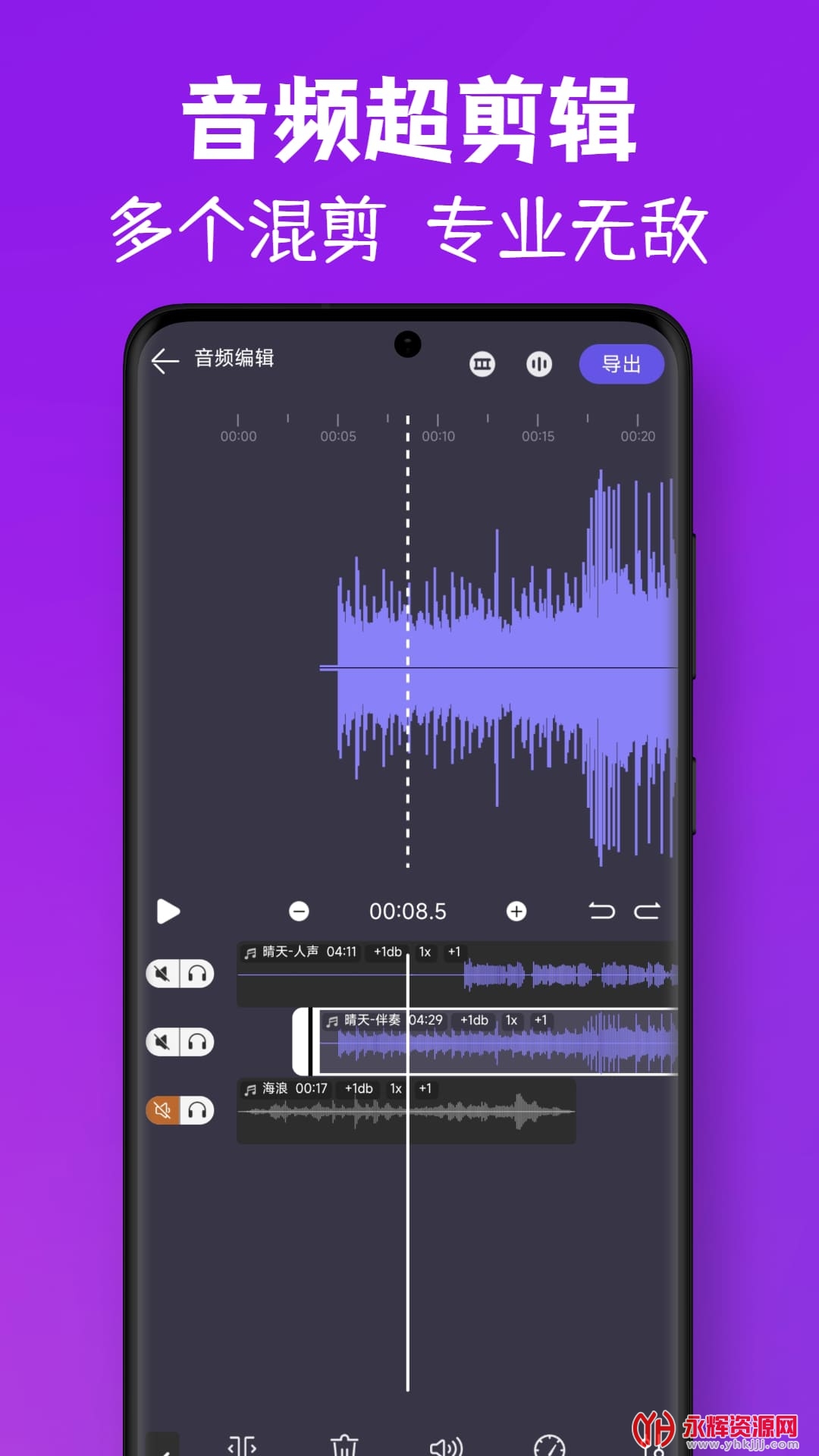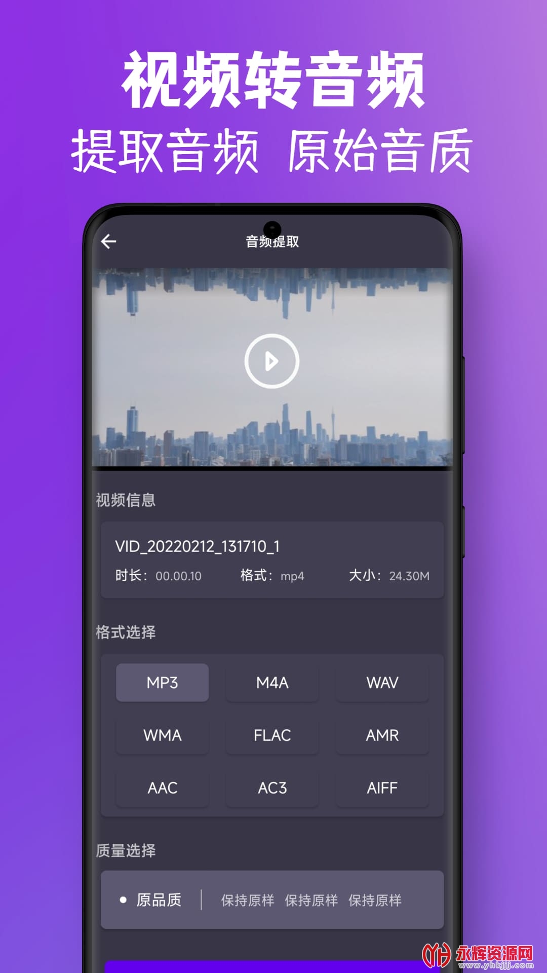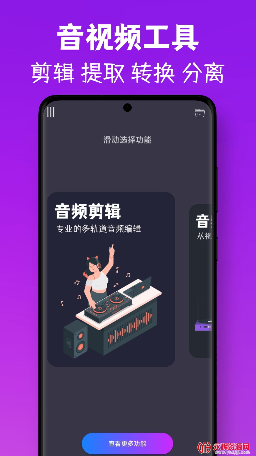 MP3视频提取转换是一款方便实用且功能齐全的移动端掌上音频编辑工具应用软件。这款软件可以帮助用户轻松提取MP3音频和转换视频格式。无论是从音乐视频中提取音频,还是将视频转换为MP3格式,均可在手机上快速完成,适合技术新手使用。如果您对这款软件感兴趣的话,不妨来永辉资源网下载体验一番吧!