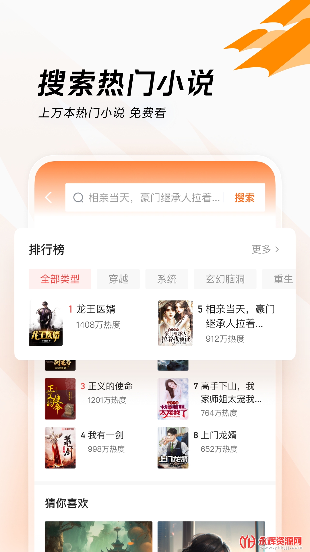 综合搜索:对小说、影视、故事、音乐等内容进行搜索。