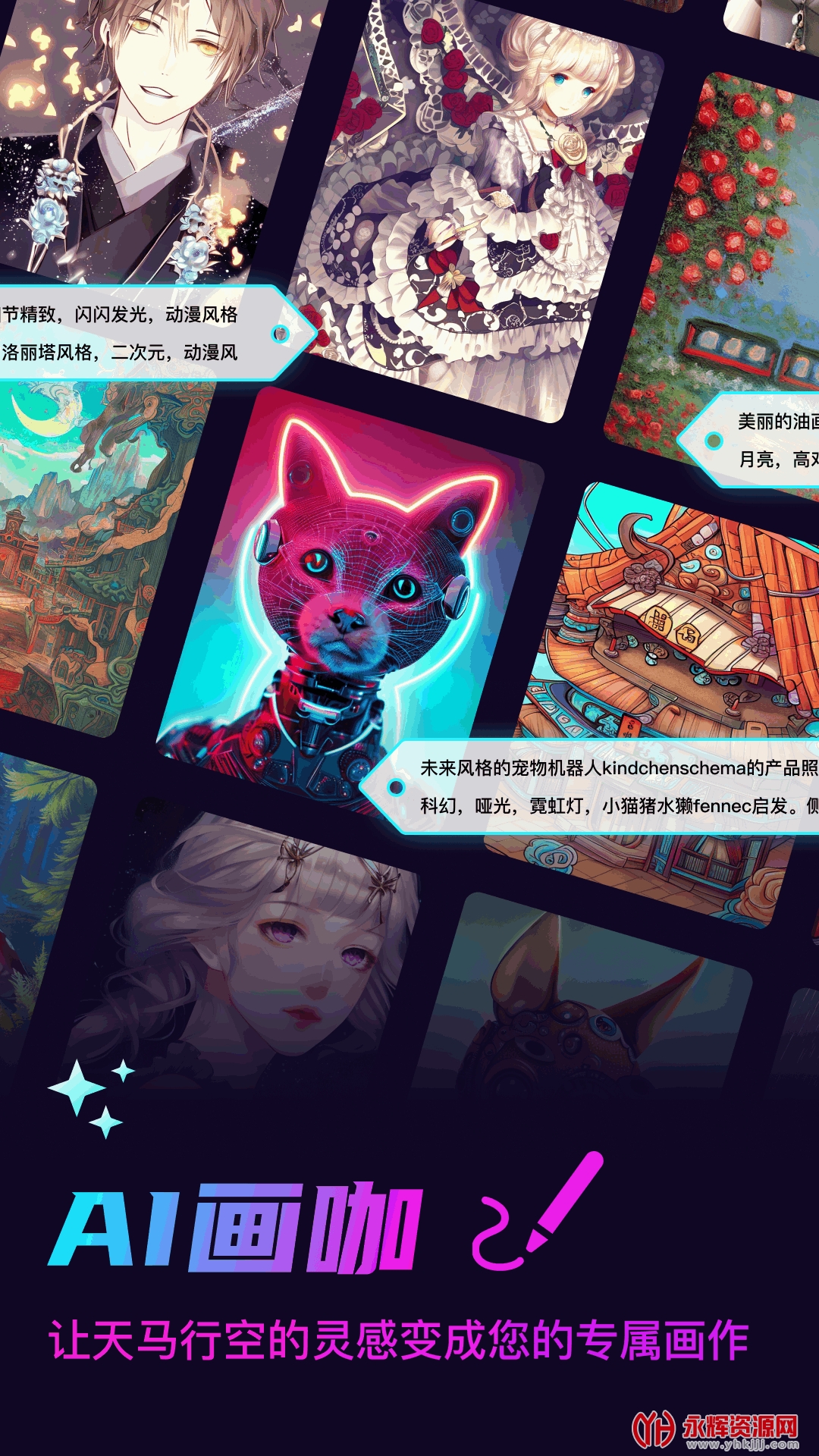 AI画咖是一款非常好用且功能强大的移动端掌上在线人工智能绘画类实用工具应用软件。这款软件基于人工智能技术打造开发,具有丰富的功能和简洁的操作界面,能快速将用户上传的照片转换为艺术风格的绘画作品,让普通照片变得艺术化。如果您对这款软件感兴趣的话,不妨来永辉资源网下载体验一番吧!