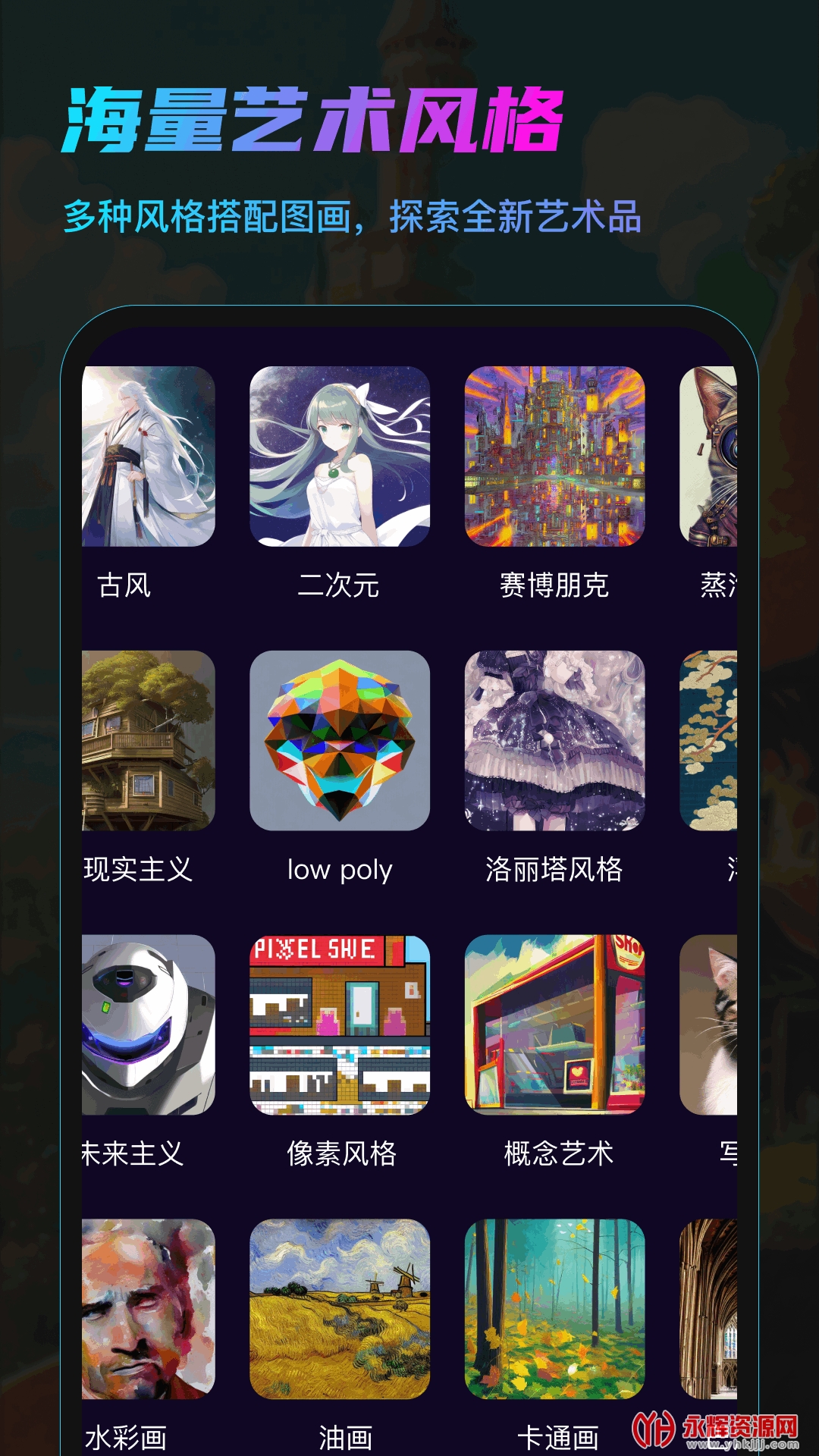 多种艺术风格选择:用户可根据需求选择不同的艺术风格,满足个性化的绘画需求。