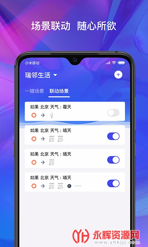 瑞邻生活是一款非常好用且功能齐全的移动端掌上在线智能家居管理工具应用软件,专门为用户提供便捷的家居控制和管理功能。这款软件同时构建家庭成员互动平台,实现智慧人居服务,提供家庭成员的互动平台,实时分享家居状况和留言,加强家庭成员间的联系,您可以远程控制家中灯光、空调、安防设备等,实现智能化家居管理。如果您对这款软件感兴趣的话,不妨来永辉资源网下载体验一番吧!