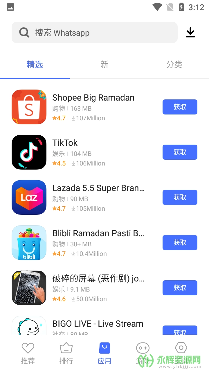 资源丰富:应用、游戏种类繁多,满足不同用户的下载需求。