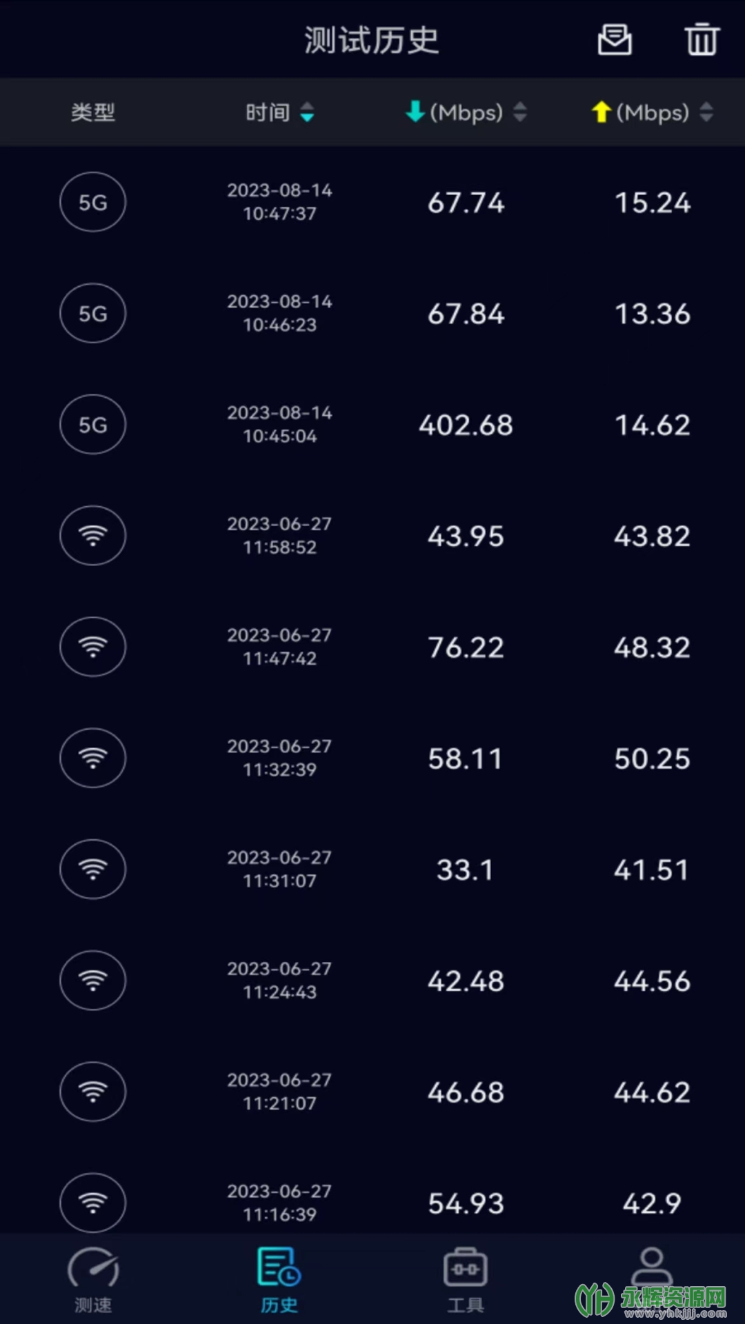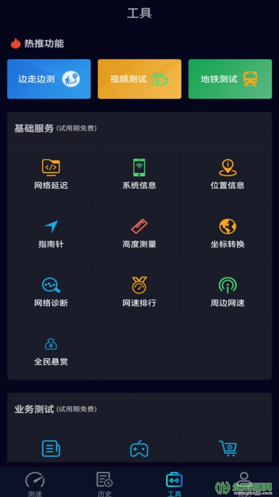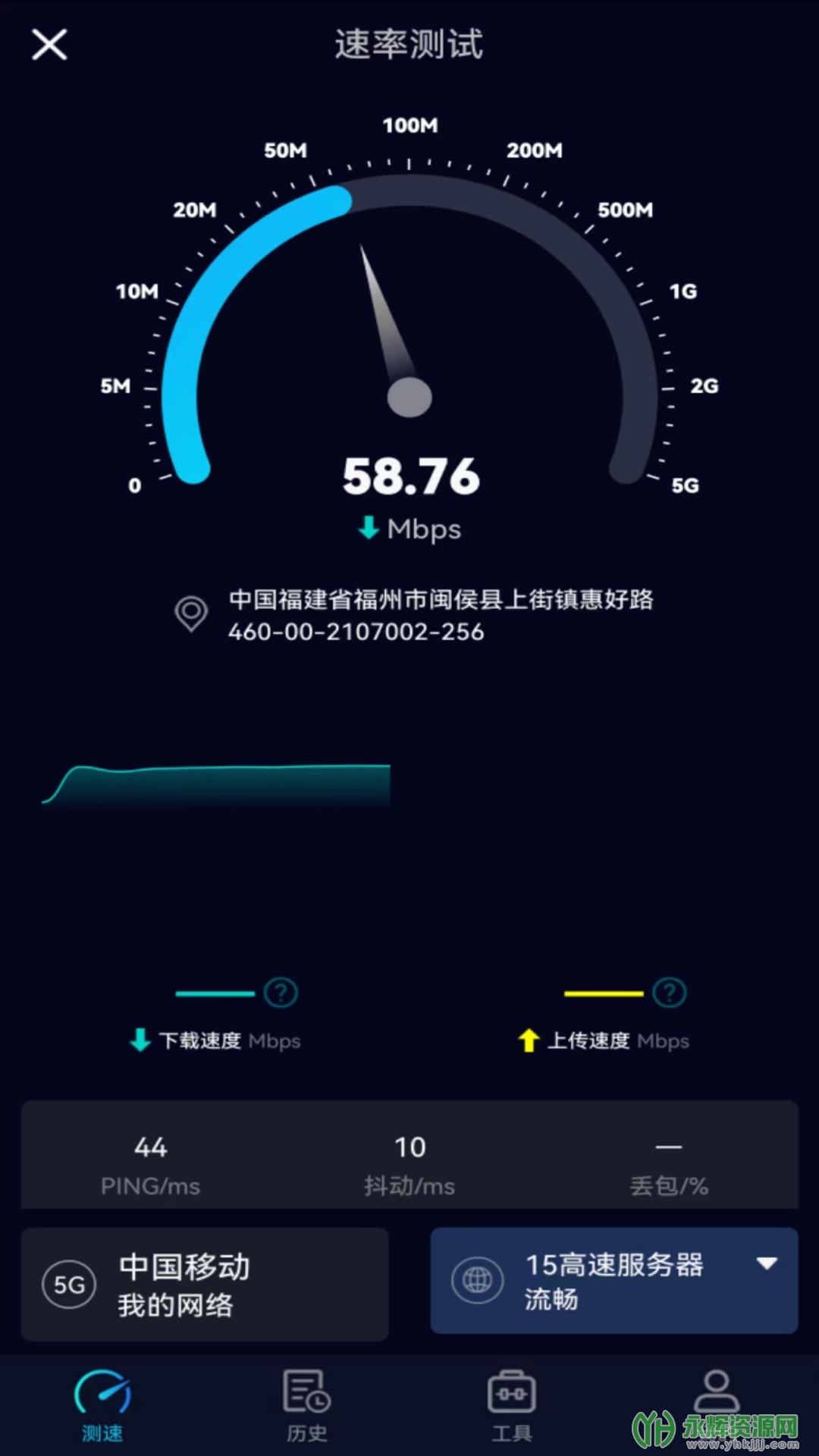 网络测速:支持2/3/4/5G及WiFi网络的一键式速度测试。