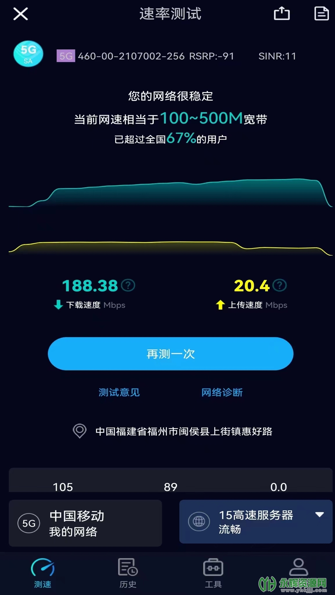Speedtest5g由诺基亚通信系统技术(北京)有限公司开发,是一款面向大众的无线网络测速工具。利用这款App,用户可以方便地对2/3/4/5G及WiFi网络进行准确的速度测试。用户界面简洁、操作流畅,集成了众多实用功能,以满足用户对网络状态的快速了解和分析需求。如果您对这款软件感兴趣的话,不妨来永辉资源网下载体验一番吧!