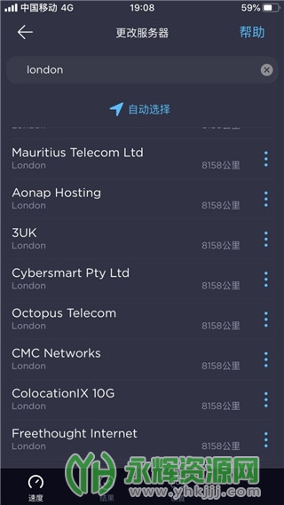 1、更换测速点:点击开始画面里的【更换测速点】,选择其他的测速服务器。比如你想知道到英国London的网速如何,只需要输入London,然后选择一个在London的测速点,比如3UK。