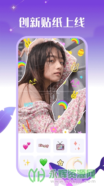 3、贴纸和水印:内置各种可爱有趣的贴纸和自定义水印,用户可以轻松为照片增添个性化元素。