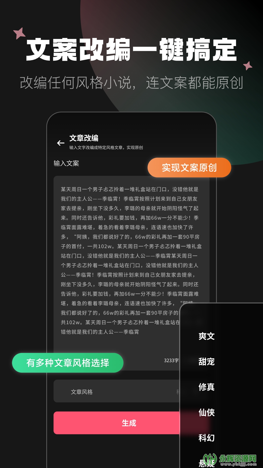 支持一键生成文字、图像内容。