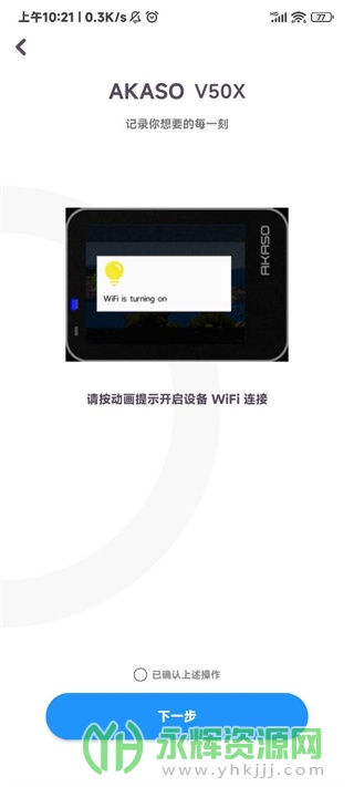 5、按照平台的动画提示开启设备wifi连接,点击下一步;