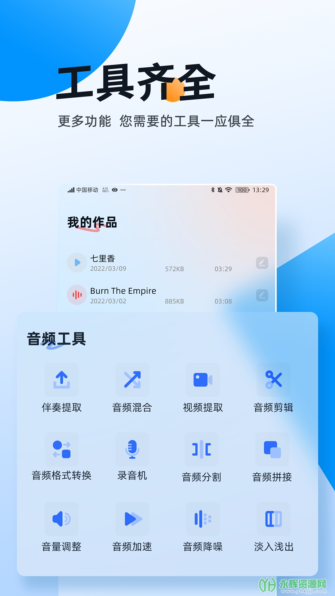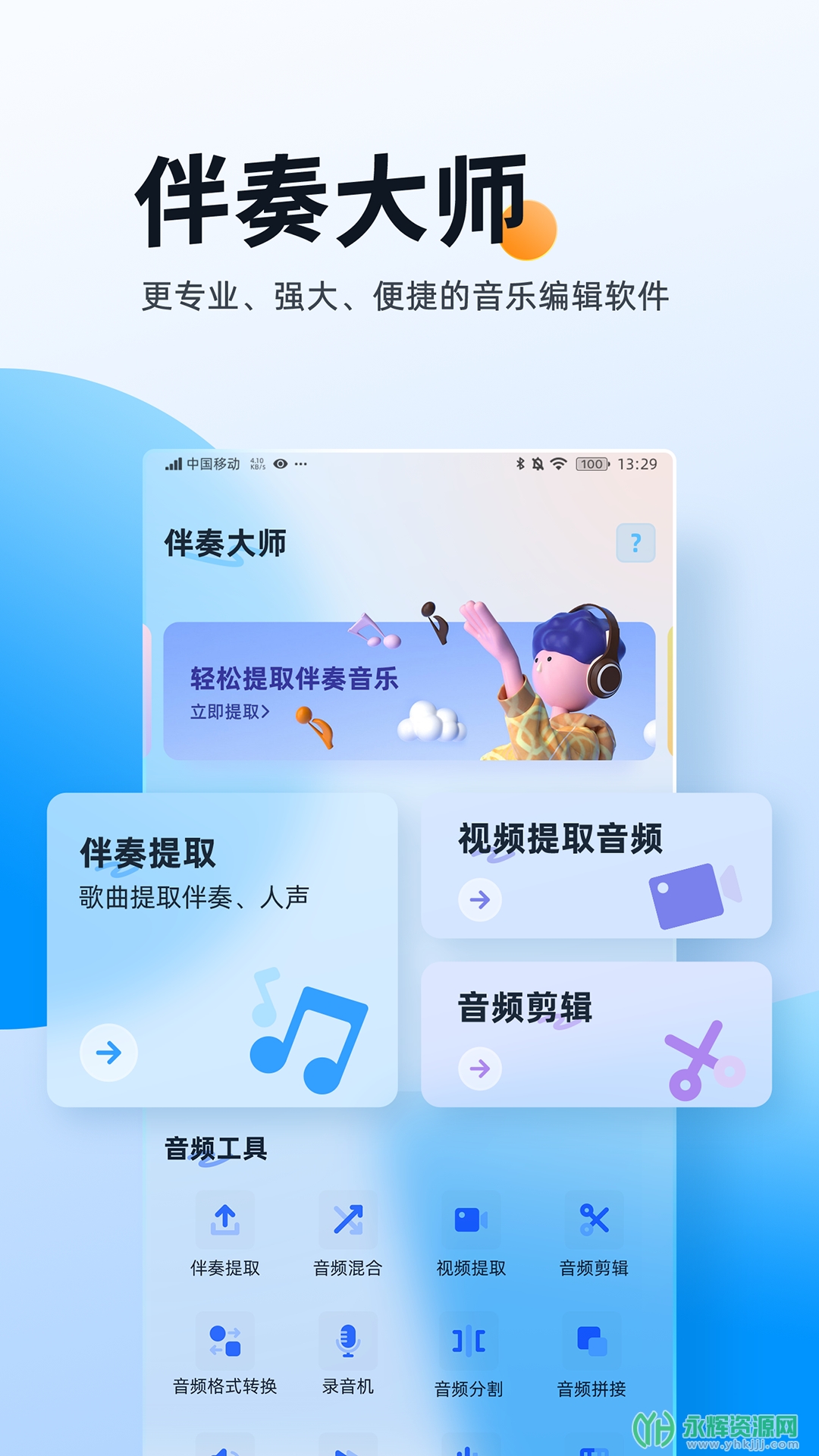 伴奏大师是一款专为歌唱爱好者设计的移动端伴奏软件,功能多样且操作简便。提供丰富的伴奏音乐素材让唱歌不再枯燥,同时配合独家的升降调技术,满足个性化需求,让每位用户都能找到适合自己的伴奏。它的直接提取音乐节奏和一键分享功能,让K歌和演出变得更加轻松有趣。如果您对这款软件感兴趣的话,不妨来永辉资源网下载体验一番吧!