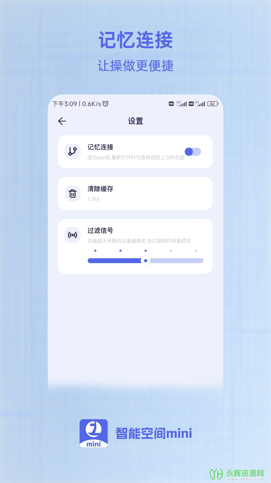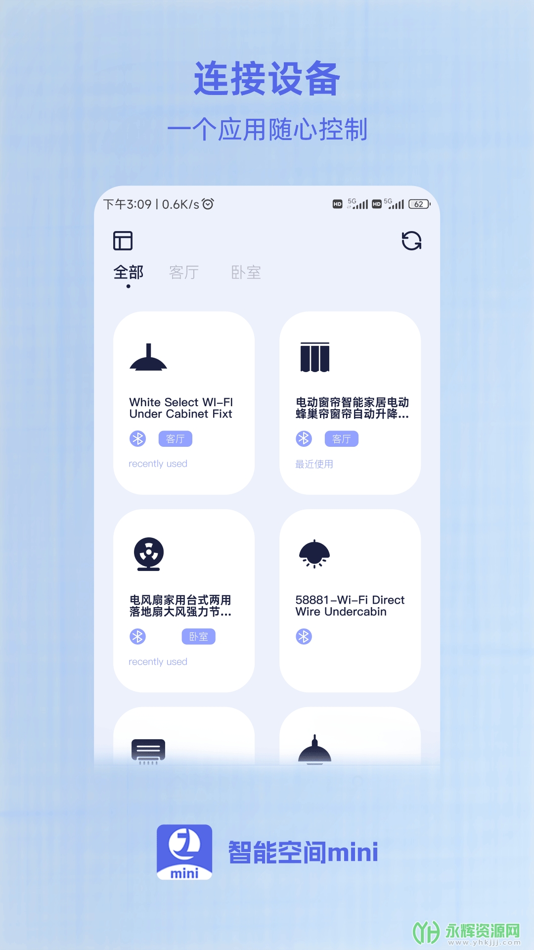 智能空间mini是一款非常好用且功能齐全的移动端掌上在线智能家居控制平台应用软件。这款软件作为在线智能家居控制平台,其主要功能是方便用户轻松控制全屋智能设备。无论身处何地,用户一部手机就可以便捷管理全屋智能设备,例如照明灯光和音乐等。如果您对这款软件感兴趣的话,不妨来永辉资源网下载体验一番吧!