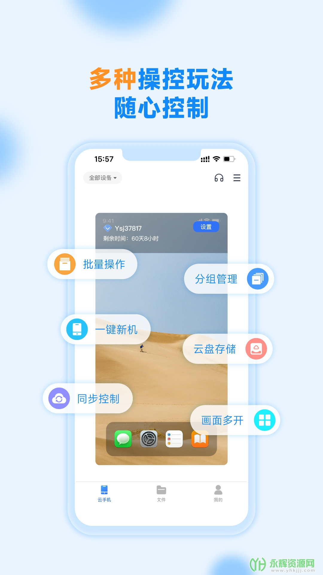沐桦云手机是一款非常好用且功能齐全的移动端掌上在线安卓云手机平台应用软件。这款软件的特色在于云端运行,24小时在线稳定,并采用专业级GPU硬件加速,全面兼容Android原生软件,并且适配多个场景,包括游戏托管、电子商务、视频直播、移动办公等。如果您对这款软件感兴趣的话,不妨来永辉资源网下载体验一番吧!