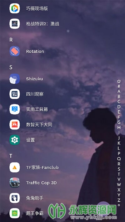 3、如果你想查找哪个应用,就点击那个应用的首字母,你手机中所有的应用都是按照首字母进行排序的。