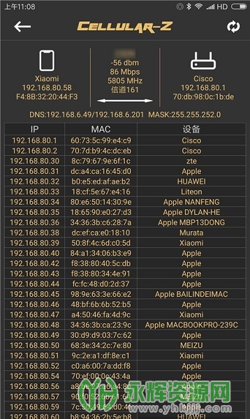 - Wifi信号检测:可以实时检测查询手机的Wifi信号质量,包括信号强度、频道、速度测试等参数。