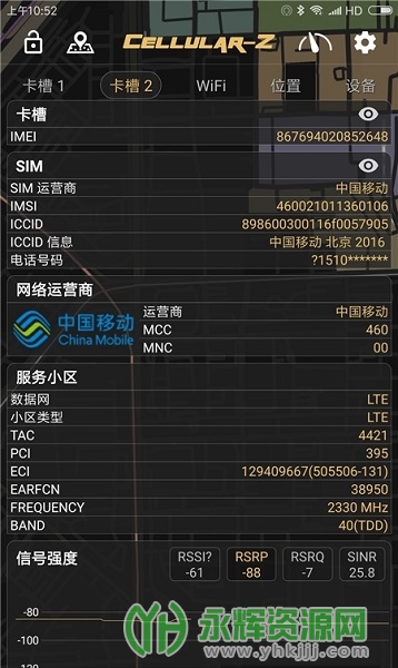 支持手机运营商信号和WiFi信号相关数据的测试。