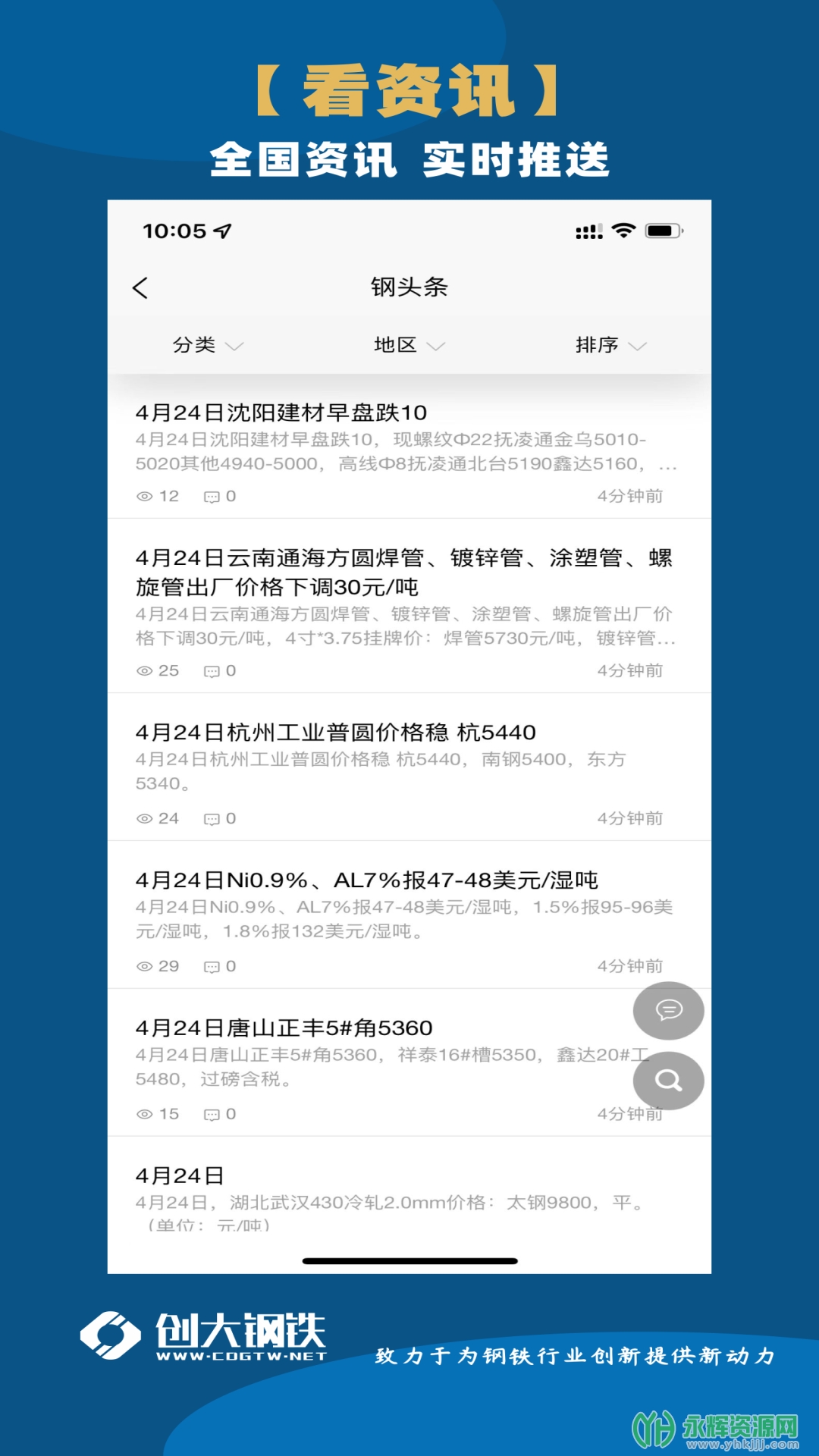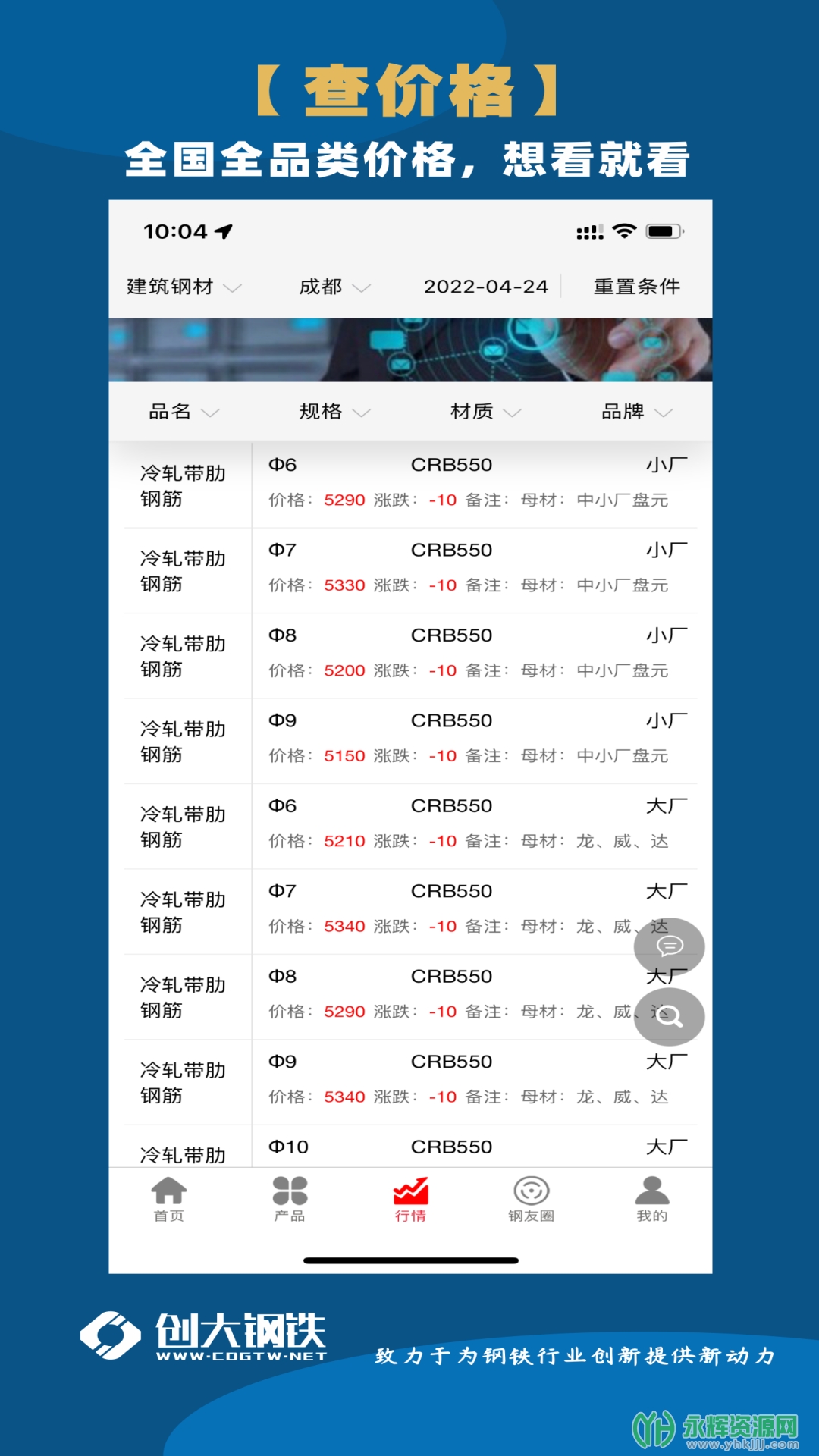 创大钢铁是一款服务于中国钢铁产业的大数据应用平台,致力于为用户提供全面和实时的钢铁市场价格、指数和行业动态。软件覆盖了钢坯、铁矿石、废钢、热轧、冷轧、中板和钢筋等各个产品的市场数据,旨在支持市场企业用户通过高价值数据提升品牌形象力和市场竞争力。如果您对这款软件感兴趣的话,不妨来永辉资源网下载体验一番吧!