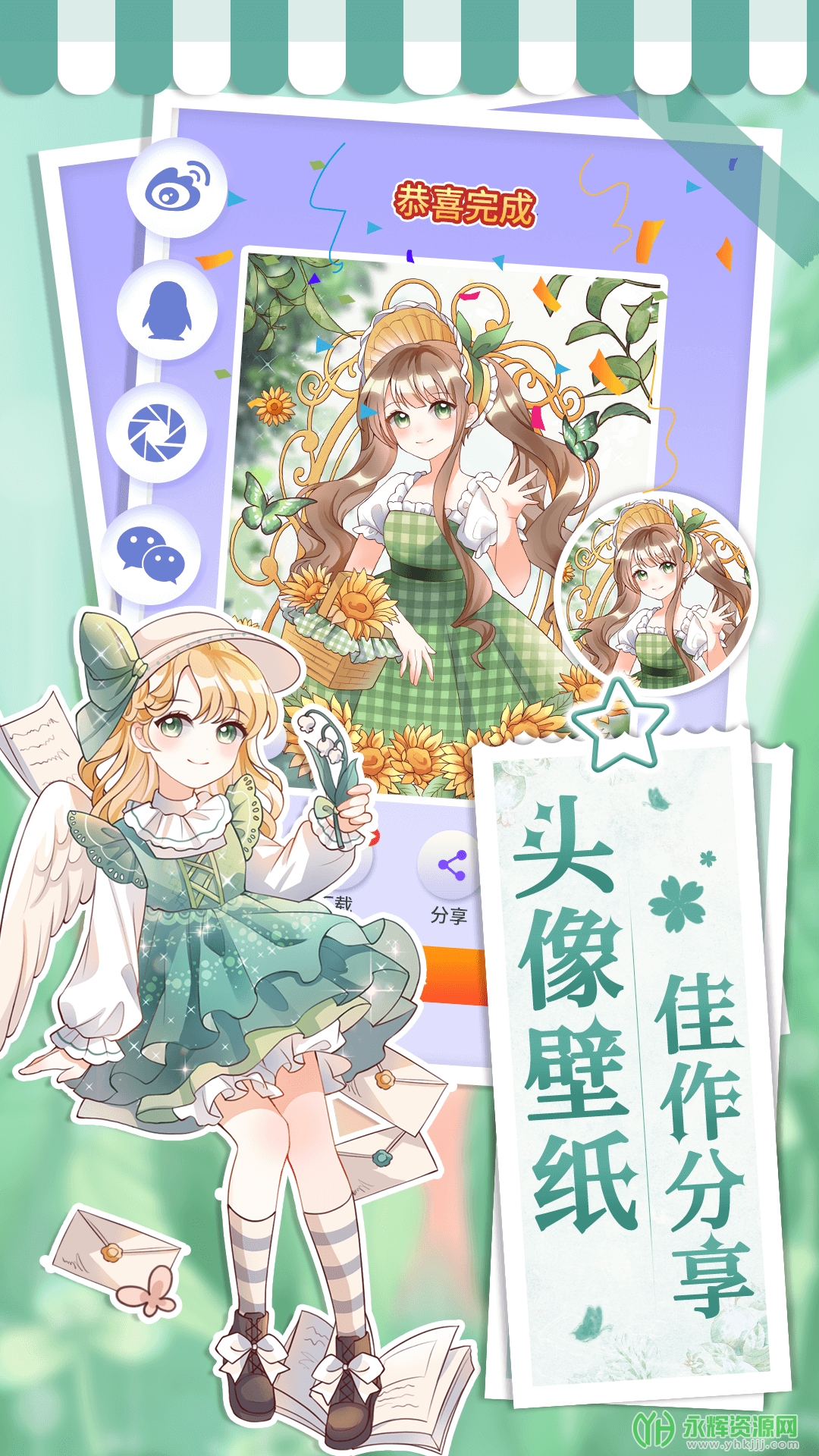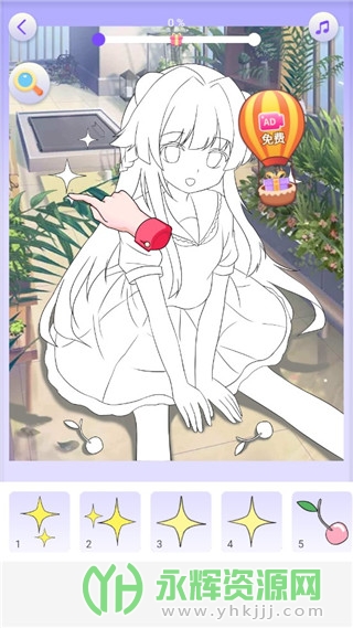 模板绘画:提供丰富的模板供用户选择,通过颜色填充和贴纸使模板变得更加精美。