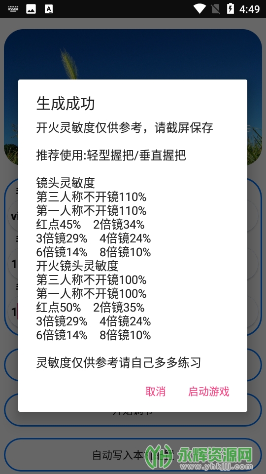 灵敏度生成器:根据用户的手机型号配置生成最适合的游戏灵敏度,操作简单,无需注册登录。
