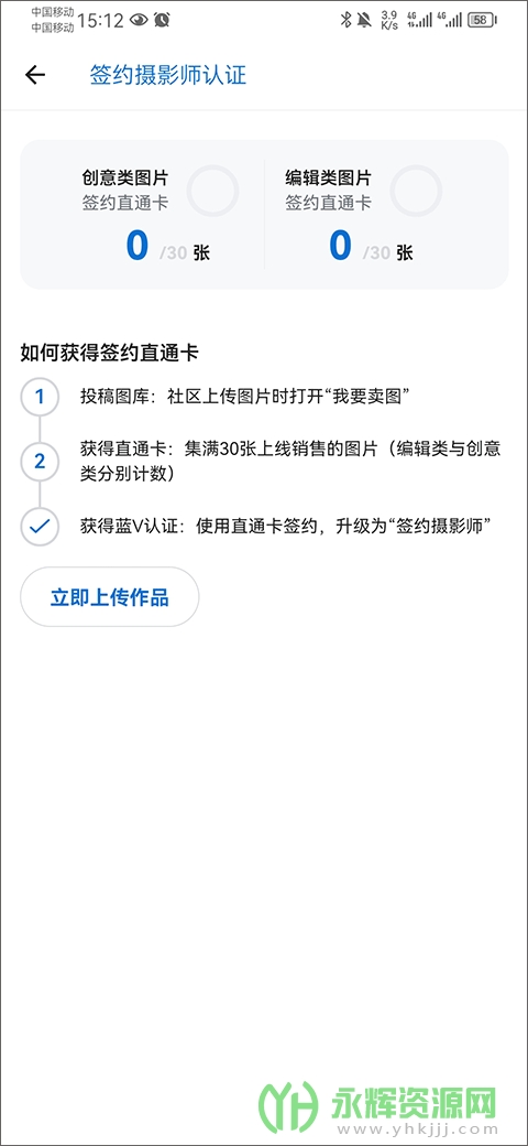 2、当审核入库累计上线满30张后即可获得签约直通卡升级为签约摄影师。