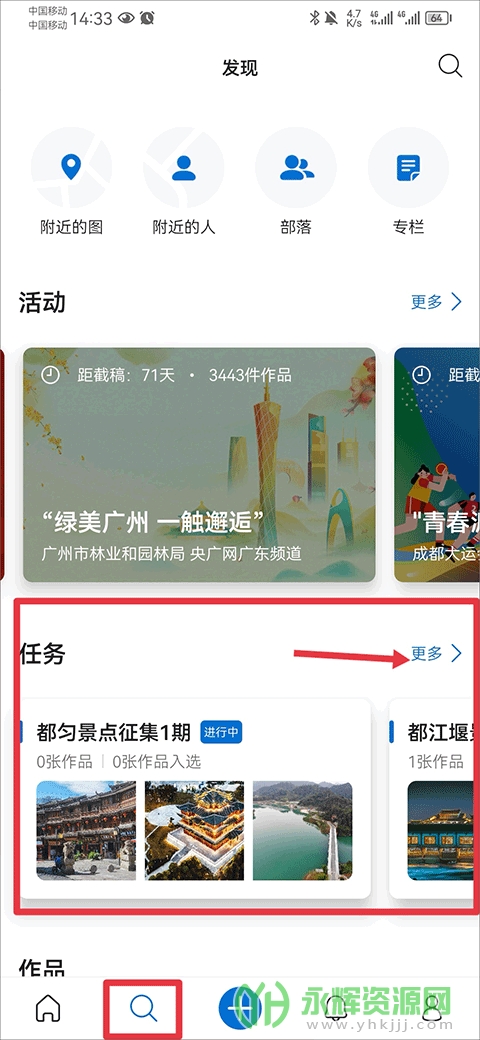 1、大家在发现界面中会看到一些开展的各种活动,这些活动是可以有稿费的,点击更多可查看更多活动