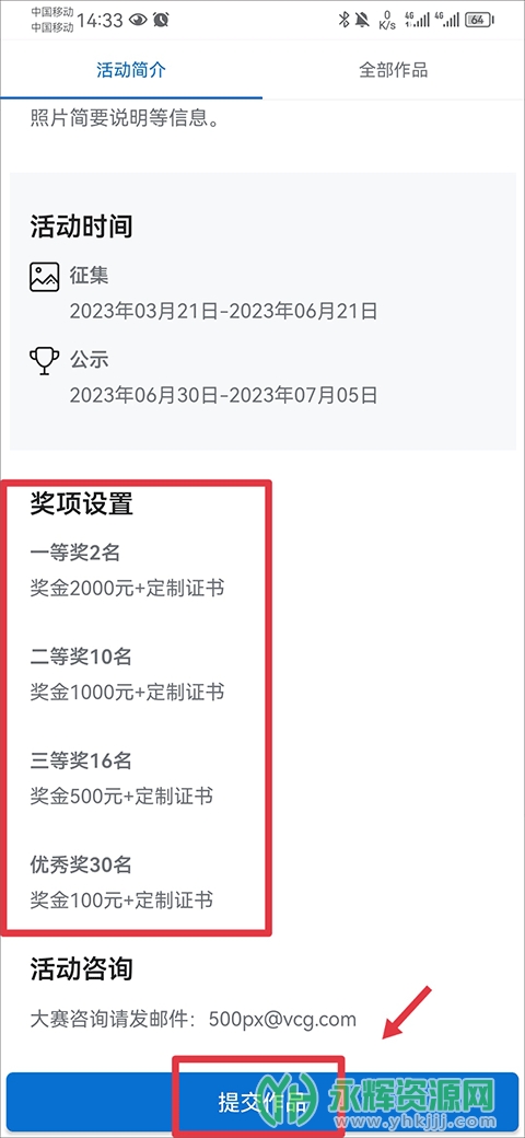 3、每个活动的投稿要求、内容以及奖励都不同,用户按照要求提交作品后等待结果即可,若成功获得获奖名单则可以收获对应奖品或奖金的奖励