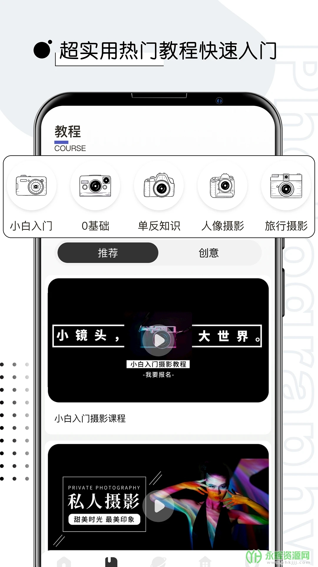 2、学习视频:提供了众多的摄影学习视频,包括摄影技巧、摄影器材的使用方法等,可以帮助摄影小白快速入门。
