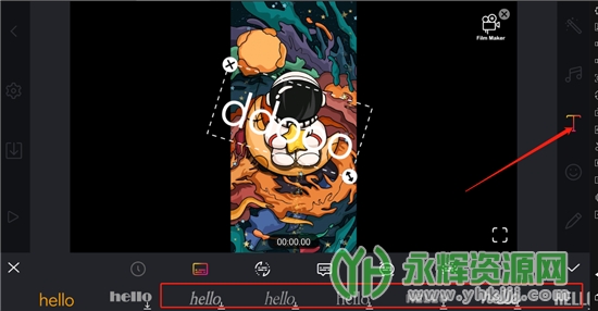 2、点击文字编辑工具,随意输入文字内容,然后在设置文字效果;