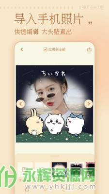 该软件还支持一键生成和修改尺寸的功能。一键生成让制作过程更加便捷,你只需选择照片和相框,软件会自动为你生成大头贴,并保存在手机相册中。同时,你还可以轻松调整照片的尺寸,适配不同的平台和设备,让你的作品在各种场景下展现出最佳的效果。