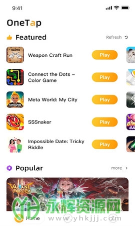 OneTap云游戏是一款非常好用且功能齐全的移动端掌上在线云游戏平台应用软件,能够一站式解决游戏玩家对高品质游戏资源的需求。这款软件以云技术为基础,为用户带来即点即玩的游戏体验,无需高端硬件配置,即可在任何设备上尽情畅玩各种热门游戏。如果您对这款软件感兴趣的话,不妨来永辉资源网下载体验一番吧!