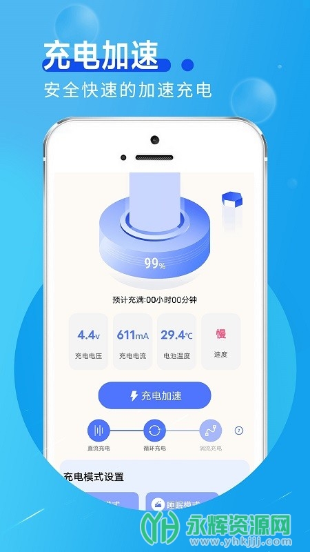 青春极速充电,一款十分轻量级且功能齐全。十分好用的移动端掌上手机充电加速工具应用软件。这款软件通过智能算法停止后台程序来达到快速充电效果,致力于提升用户设备的充电效率和电池管理,且操作简便易懂,是您日常使用中不可或缺的手机伴侣。如果您对这款软件感兴趣的话,不妨来永辉资源网下载体验一番吧!