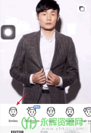 等待照片处理加载后,选择下方的效果分类,比如点击微笑。